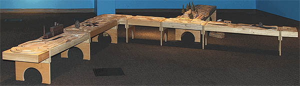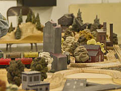 Issaquah Train Show - Set up in the old station, requiring shims to level the layout due to rough and uneven flooring.