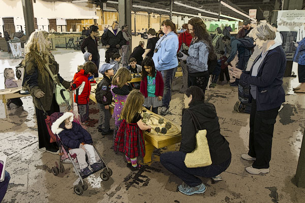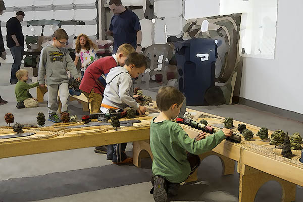 Seattle ReCreative - The first of several workshops where children could construct trains, trees and buildings for their own layout at home.