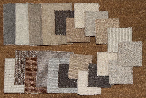 indent Landscaping and fields can be simulated with coir mats (coconut fiber) or wool carpet. These can be sheared for effect. Wool and hemp carpet remnants might be found locally... Many sources exist for natural fibers in a variety of colors and textures online too.