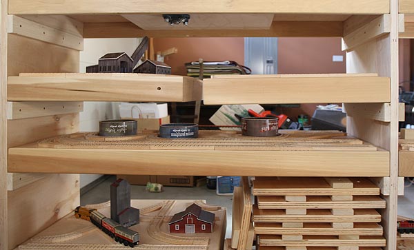 Modules set into shelves for storage