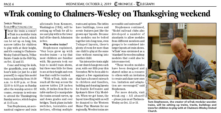 A story about wTrak at a train show at Seattle's Pacific Science Center as well as the Mini Maker's Faire can be found at the Play-Trains blog.