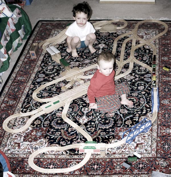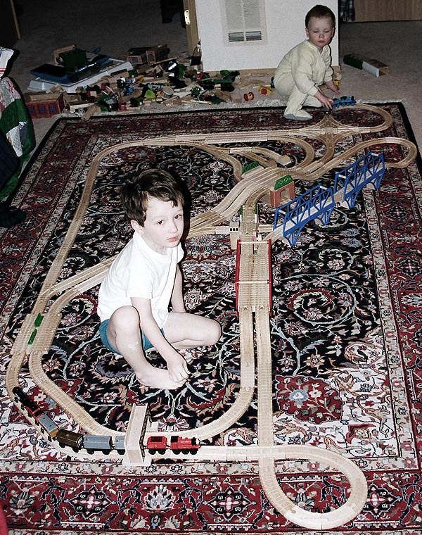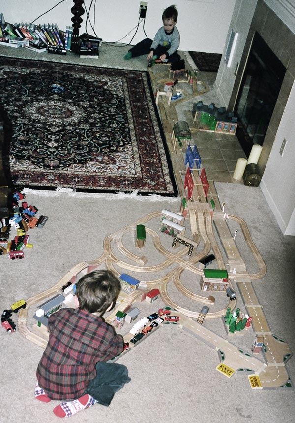 These are some of the many layouts constructed when Andrew and Douglas were little. Some of these pieces have been boxed up and put away for their children to play with some day too...