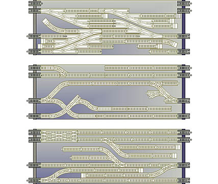sidings to allow trains to pass, the ability to branch - combining and dividing tracks, and varying the railway line entrance and exit positions between ends.