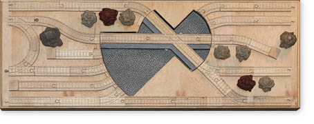 Possibly the most fun to design and the most challenging to build, a recessed turntable is really special in a layout. The table could be driven by a worm gear with a button on the side or turned manually. This feature tends to concentrate passing trains and young engineers may queue up while waiting to transit through the switchyard.